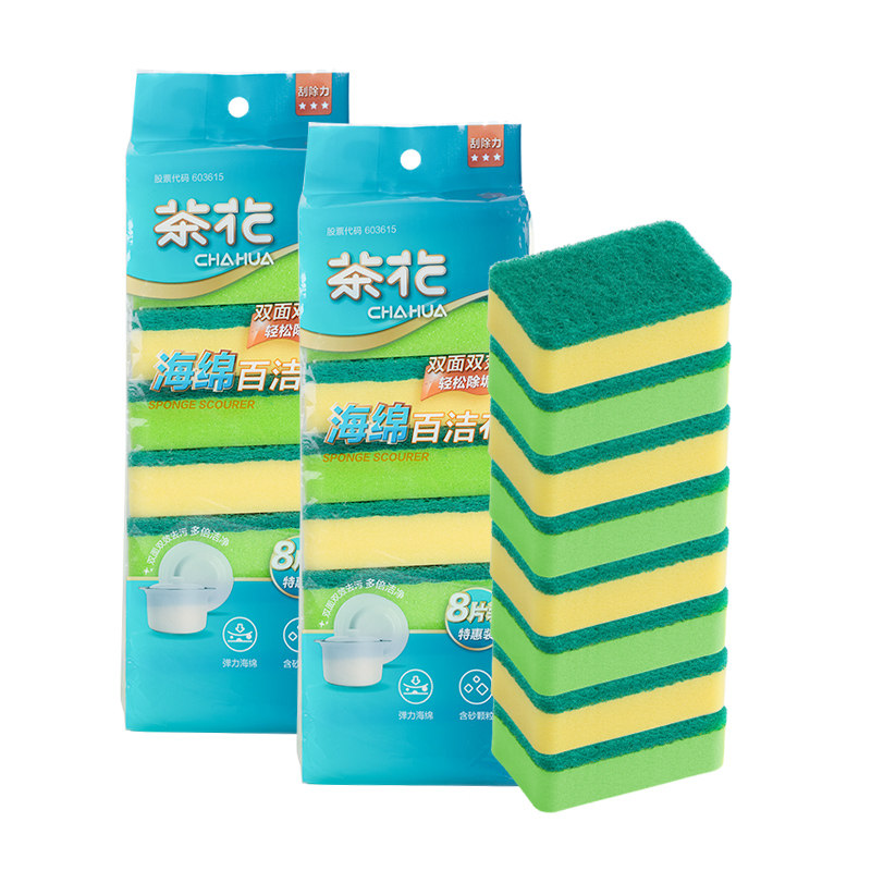 Tea flower Baise cleaning cloth kitchen dishwashing brush bowls cloth white cleaning cloth Home not easy to stick with oil sponge rub thickened brush pot not