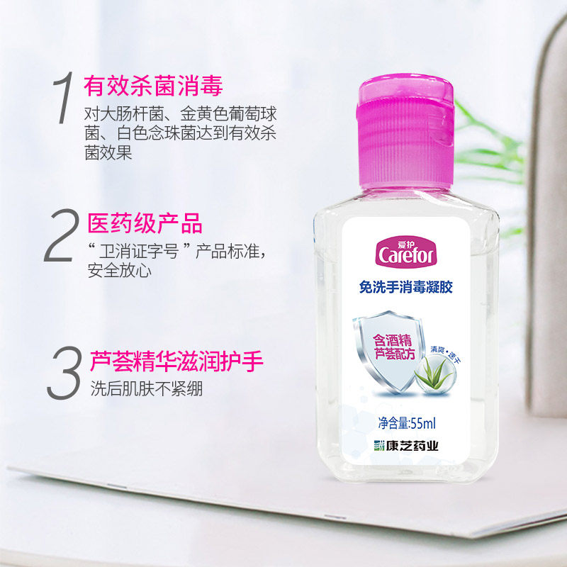 Care for free hand sanitizer Children's disinfection Sterilized Alcohol Free Hand Wash Gel Small Bottle Handy 55ml