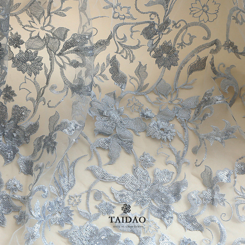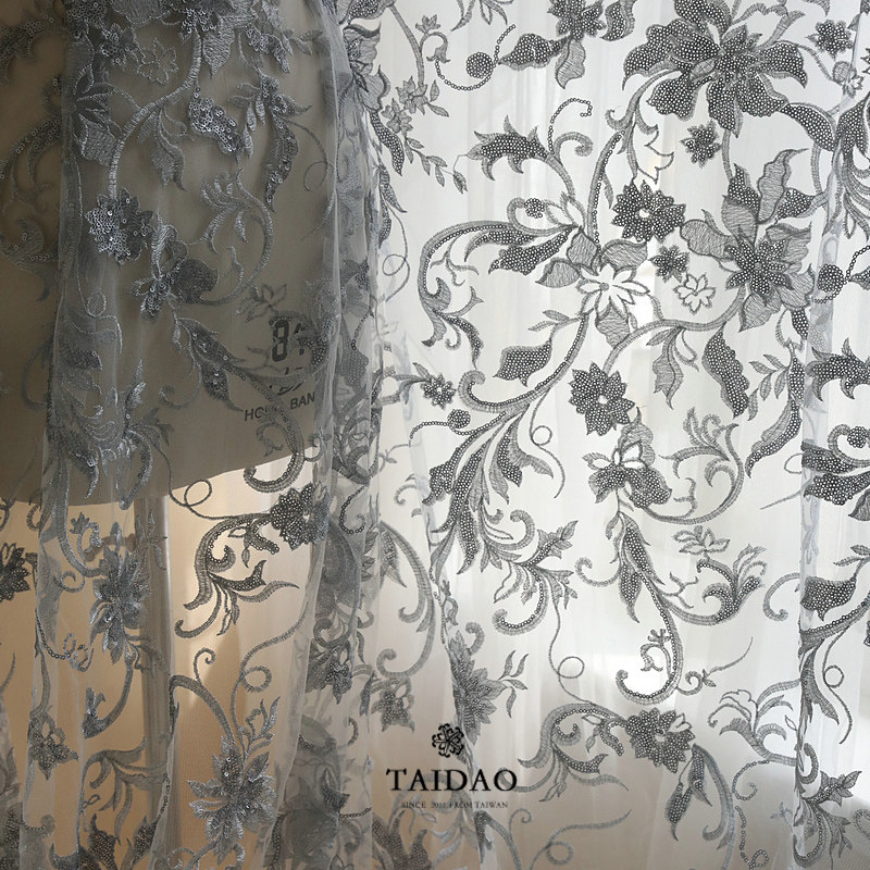 Taidao Embroidery Sequin dress Lace fabric Fabric Dress clothing fabric M26 Gray Semi-sheer lace