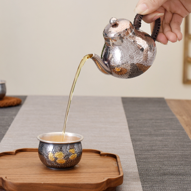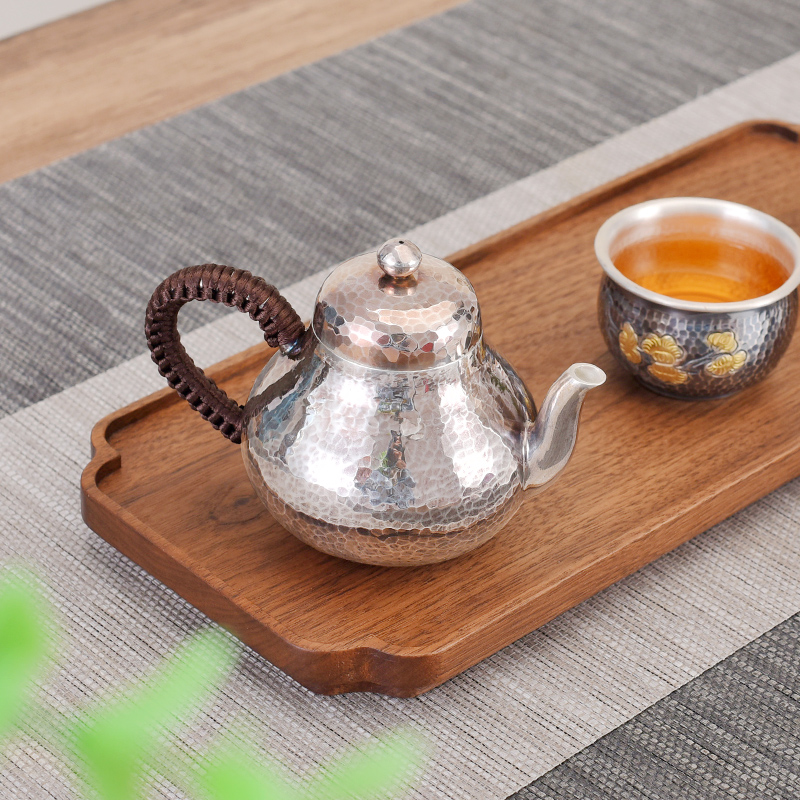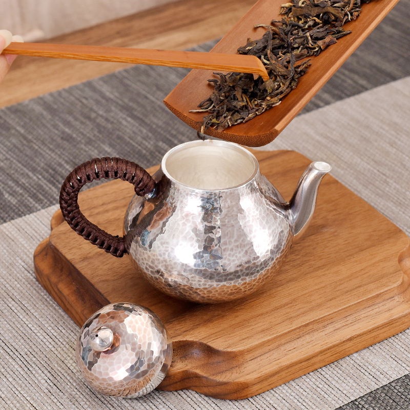 Silver Age Classic Pear Shaped Brew Teapot Sterling Silver Pure Handmade Precision Hammer Mirror Surface Old Brewing Tea Home Silver Pot