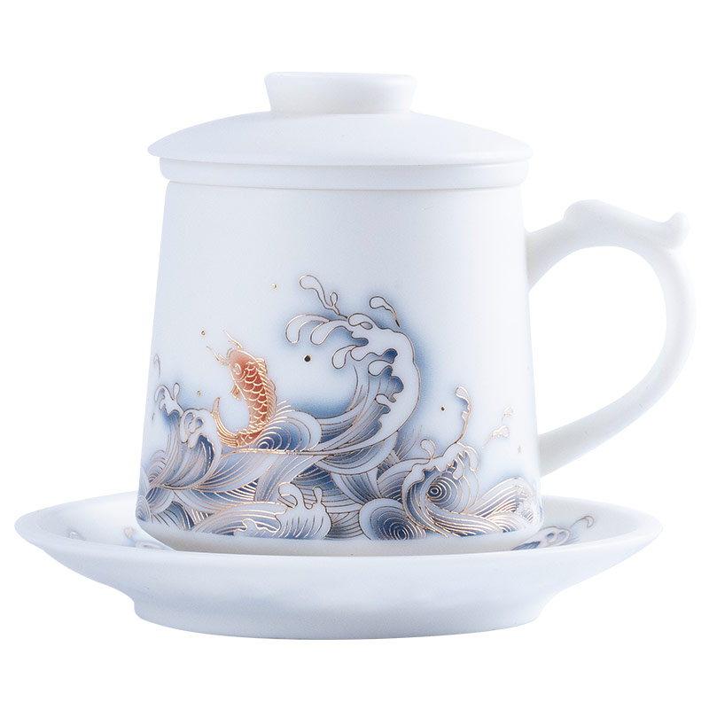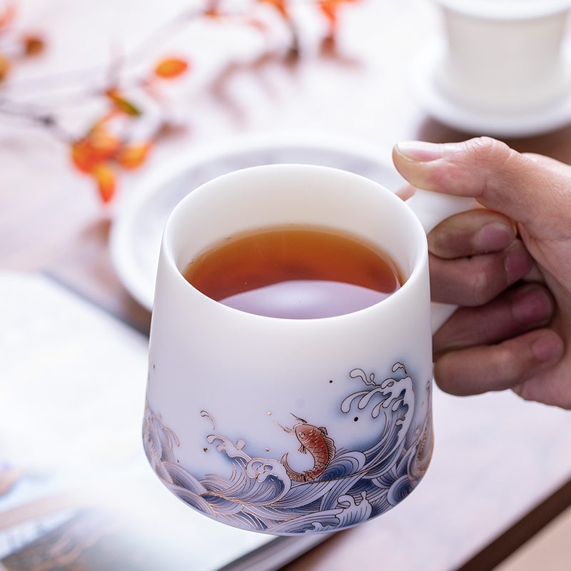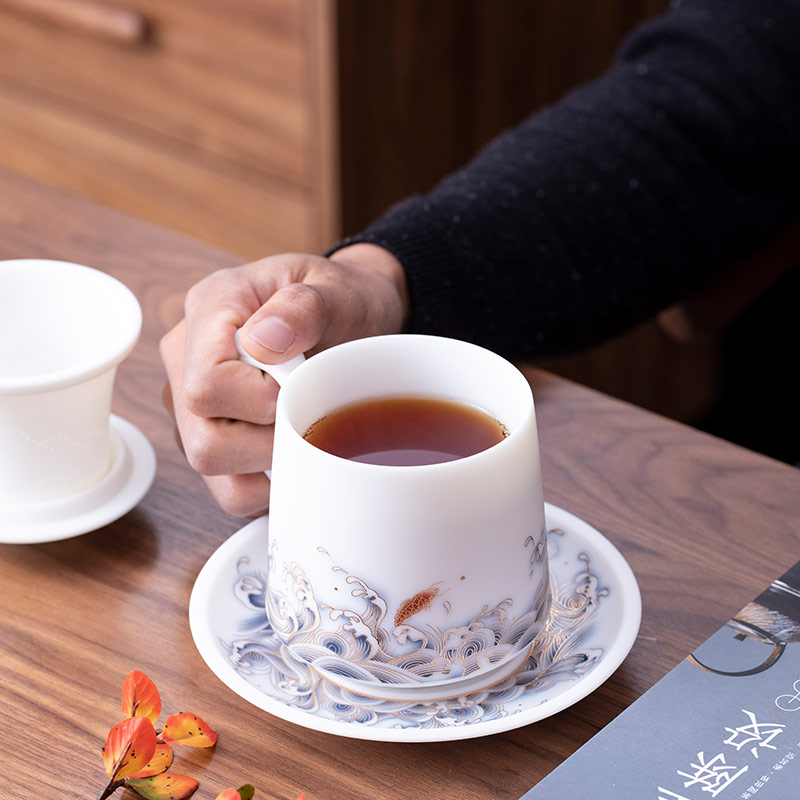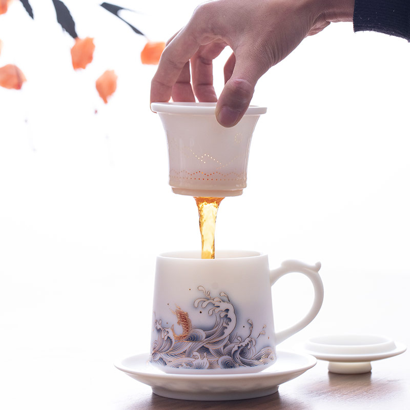 Dehua White Porcelain Mug Conference Teacup with Lid Filter Tea Sheep Fat Jade Office Cup Ceramic Personal Water Cup
