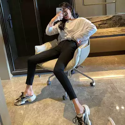 ins Super Fire star same black nine-point stretch pants high waist thin denim tight bottom pipe pants women