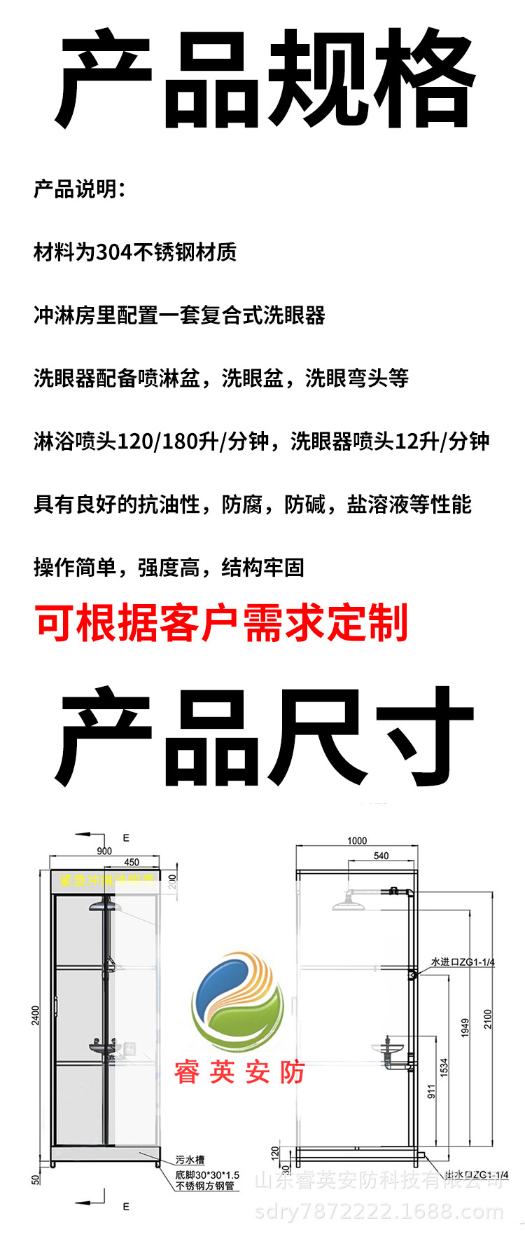 Emergency Spray Eyewash Machine 304 Stainless Steel Inspection Laboratory Industrial Vertical Flush-up Hull Chemical Plant