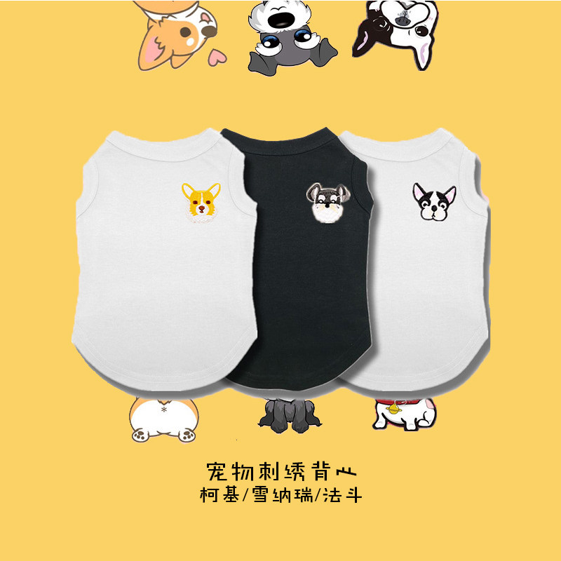 Embroidered net red dog clothes French fighting Schnauzer Corgi spring and summer models cute pet vest small dog Teddy
