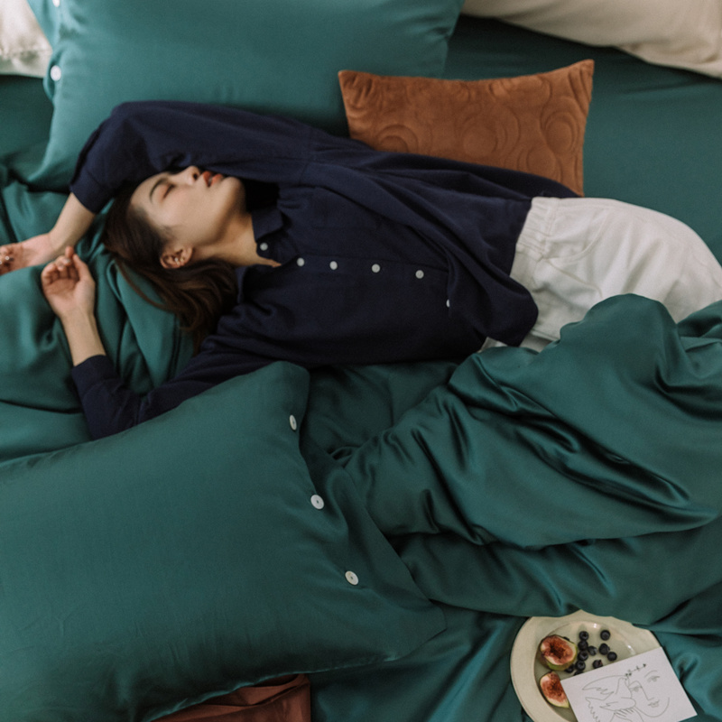 European style 60 double-sided Tencel four-piece ice silk quilt cover silky double bed simple color 1 8m bedding