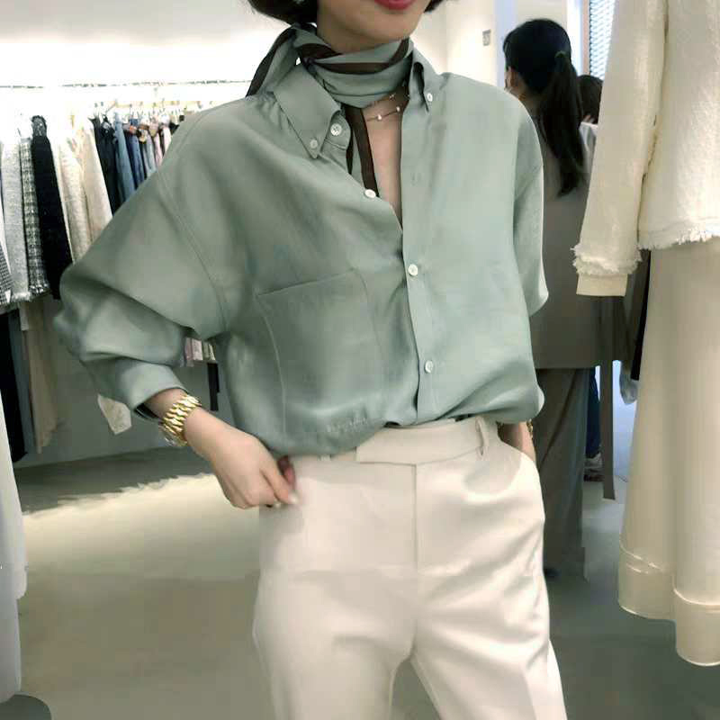 The shirt is wearing a new design in 2021 with a loose sleeve and loose sliver silk tops