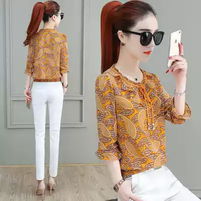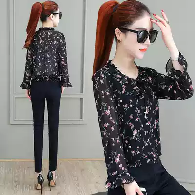 Floral chiffon shirt women's long sleeve 2021 spring new Korean version of loose fashion base shirt foreign style small shirt top tide