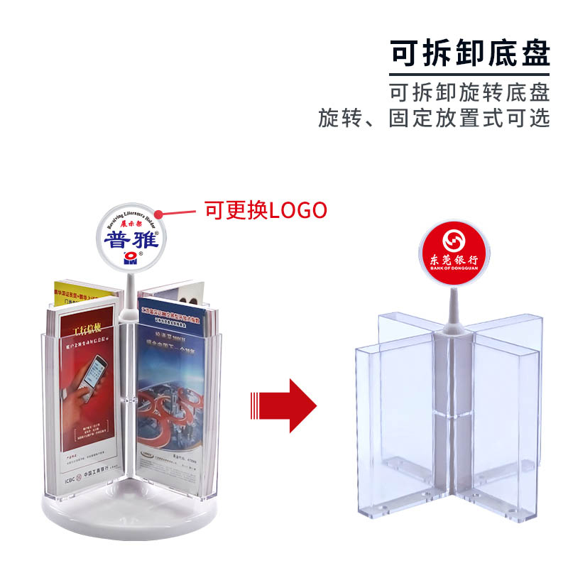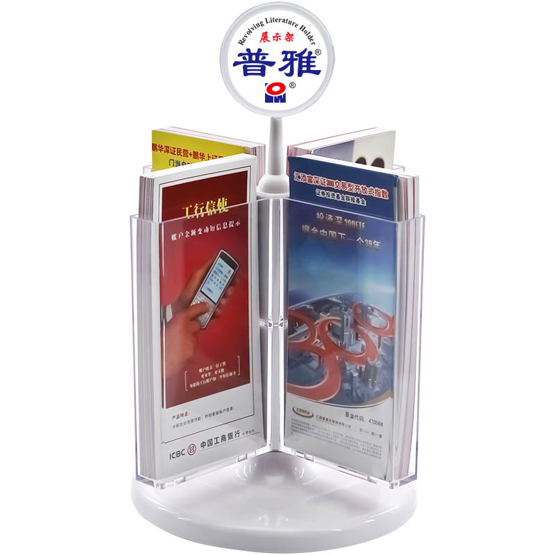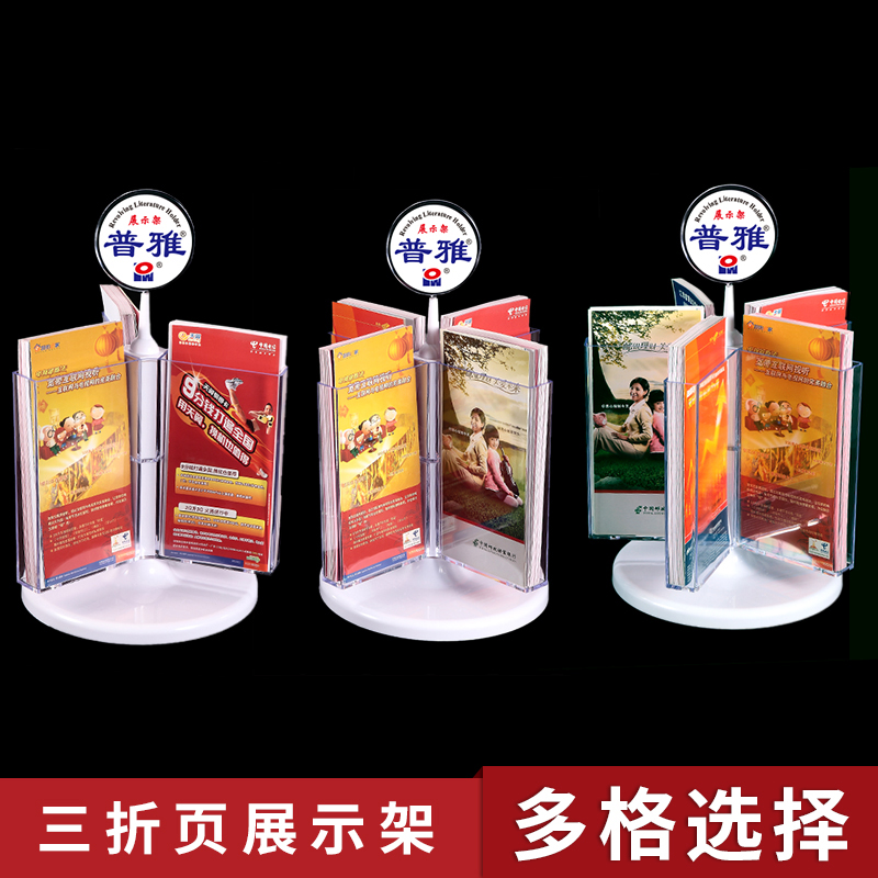 Multi-faceted rotating information shelf Desktop catalogue shelf Shelves Rotating Trig Single Page Shelf Desktop Triple Folding Page Shelf Transparent Brochure Shelf Catalogue Advertising Frame Bank Special Publicity Material Advertising Frame