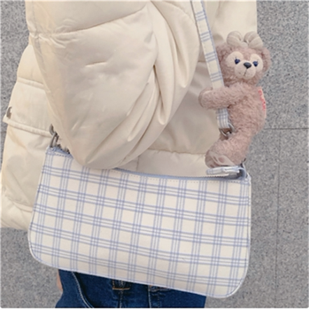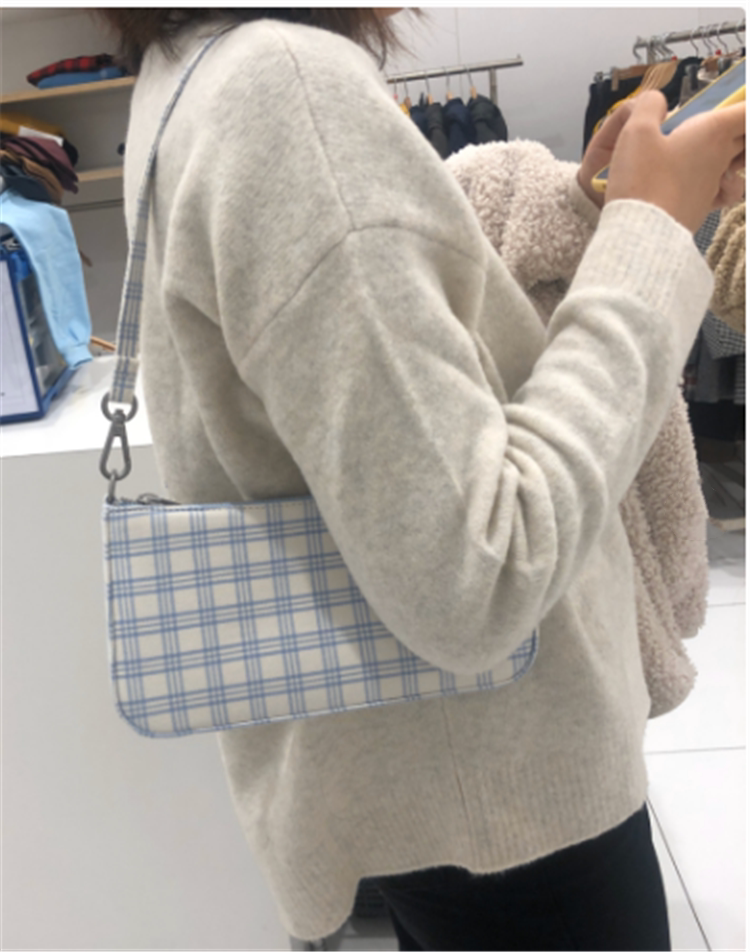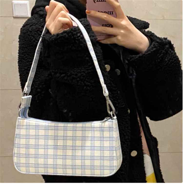 brandy2020 spot woman bag new white sky blue plaid with purse strings black Jedi underarms bag