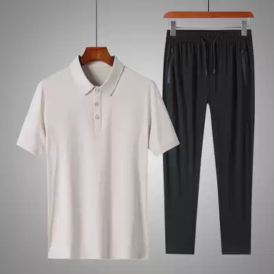 Dad short-sleeved T-shirt Men's summer lapel top 40-50 years old polo shirt half-sleeved T-shirt Middle-aged and elderly summer suit
