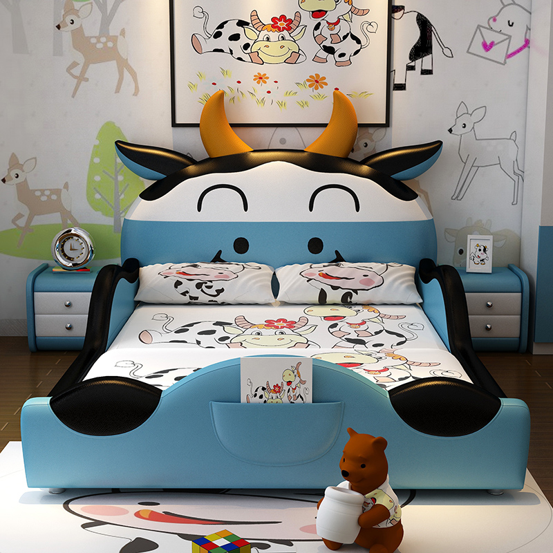 Children's single bed cartoon with guardrail solid wood boy 1 2 creative children's bed 1 5 high box storage leather bed customization