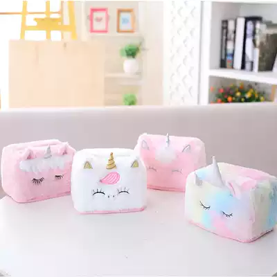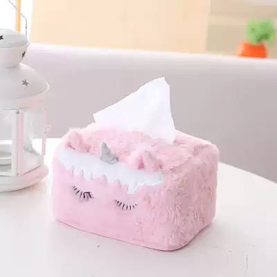 ins Wind pink young girl heart cartoon unicorn tissue box plush tissue towel cover home car decoration sanitary paper box