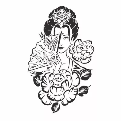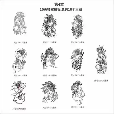 Geisha tattoo template hollow big picture flower arm samurai prajna ghost Japanese-style dark art semi-permanent spray painting book