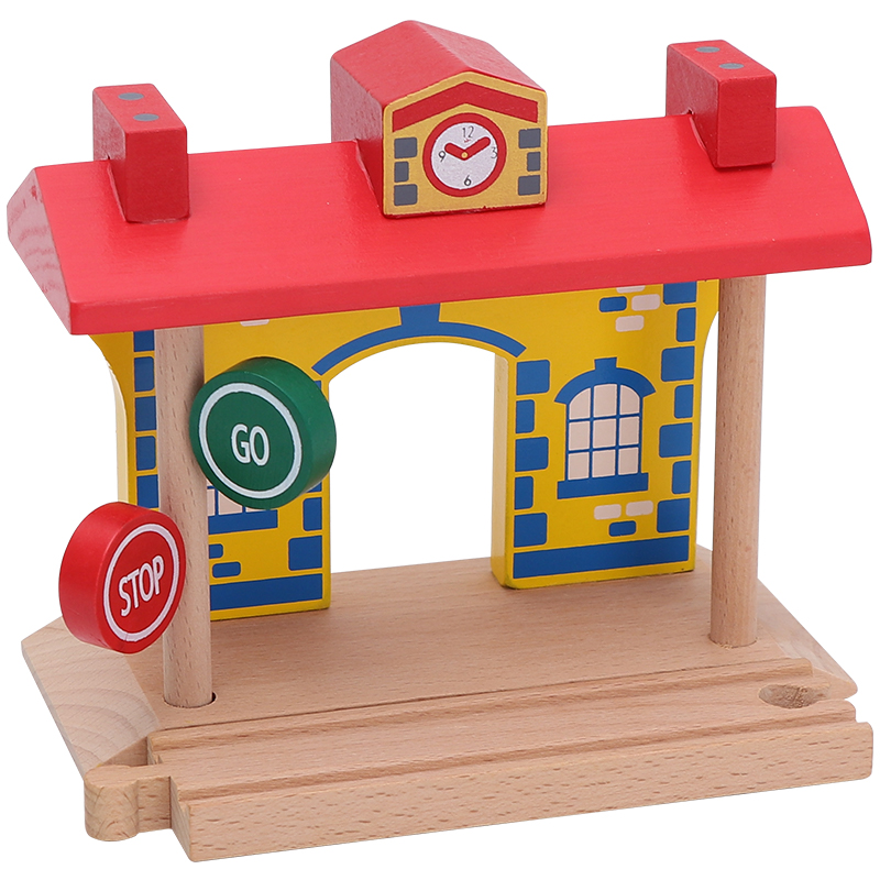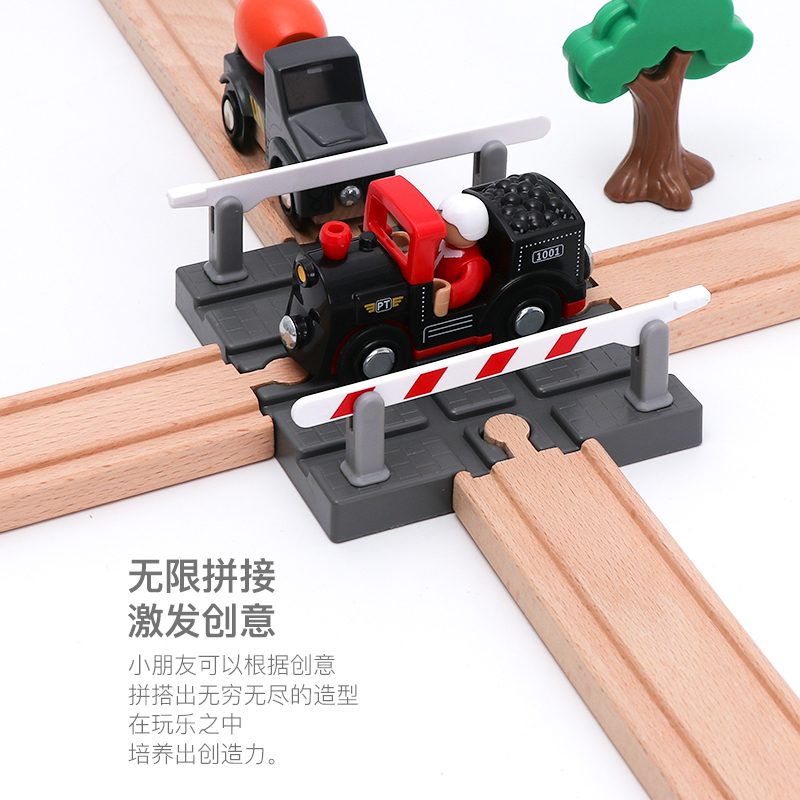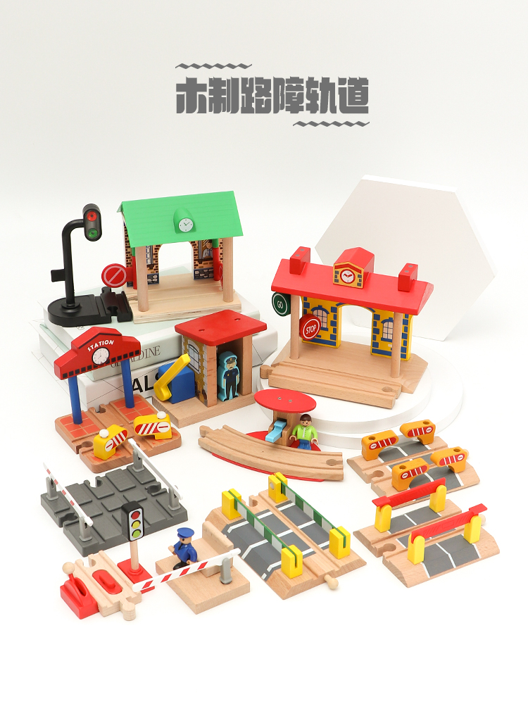 Le Ku Wooden Road Obstacles Roadblock Train Track Toys Children Building Block Accessories Compatible Wooden Track Set