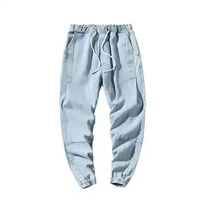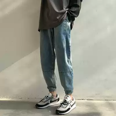 Spring jeans men's trend brand trend loose drawstring pants Hong Kong style nine points casual wild handsome small feet long pants