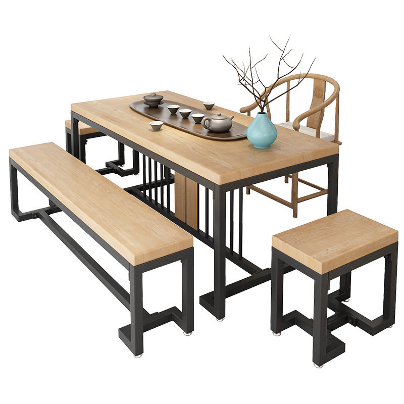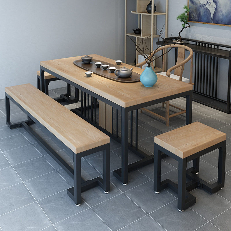 New Chinese iron art solid wood tea table modern minimalist living-room tea desk tea building Zen Yigong fu tea table and chairs combination