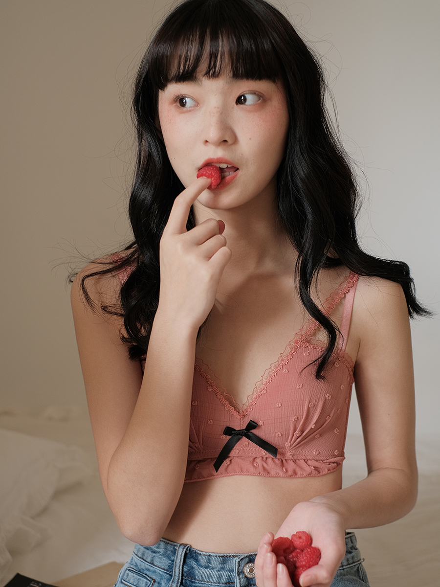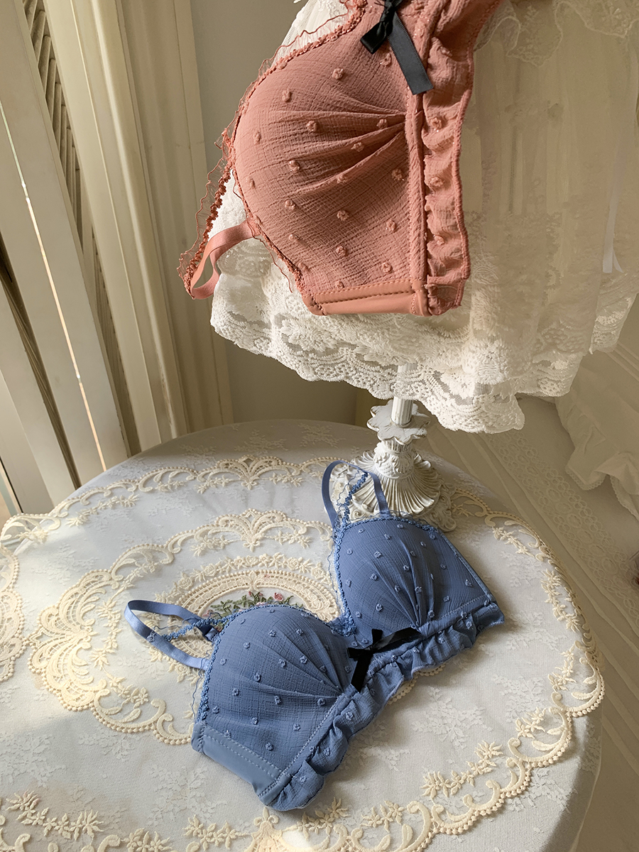 Xin bang help Bra French girl lace gathering underwear no underwire bra student solid color bra woman
