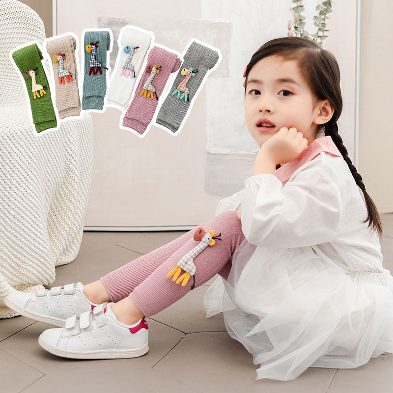 Spring Autumn Girl Knit Cotton Inside Pants Long Pants Children Cartoon Little Deer Baby Even Pants Socks Small CUHK Child Pure Cotton