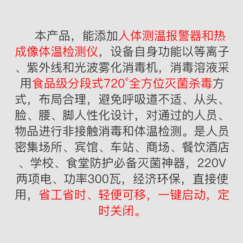 Intelligent personnel disinfection channel disinfection machine body temperature detection alarm infrared human body temperature measurement body temperature security inspection door