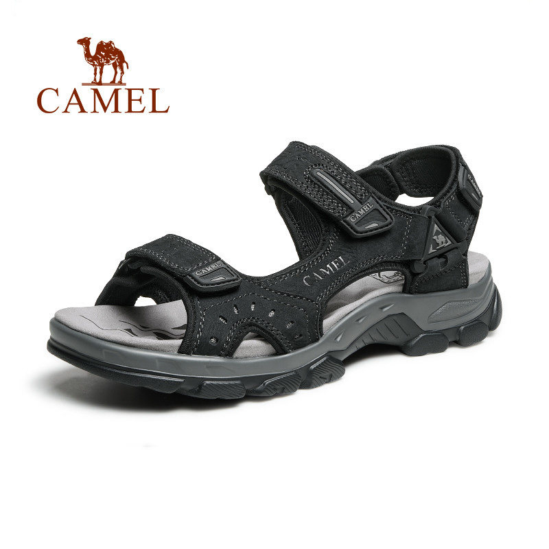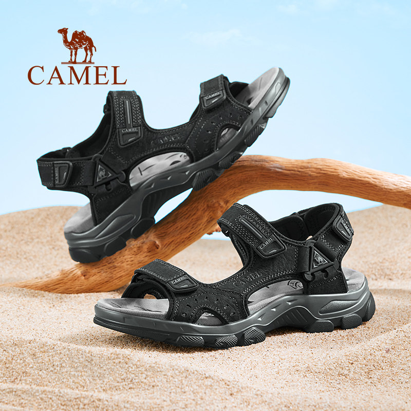 Camel Men Shoes Summer New Genuine Leather Soft-bottom Casual Sandals Men's Outdoor Non-slip Sports Magic Sticker Beach Shoes Man-Taobao