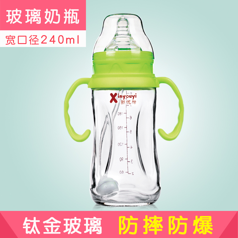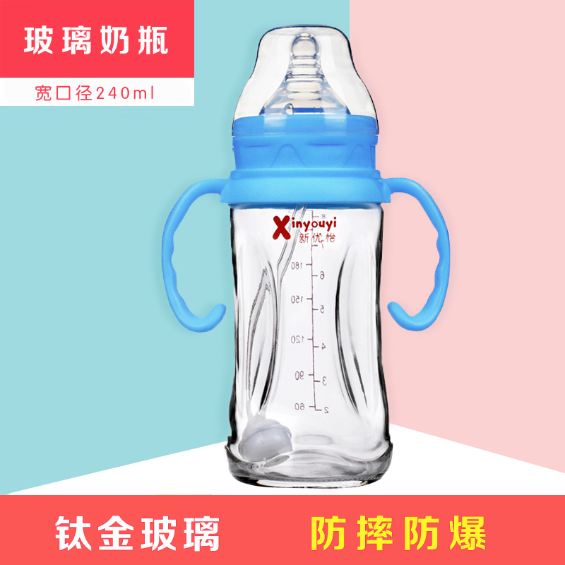 Xinyouyi glass bottle newborn baby anti-fall explosion-proof anti-flatulence big baby wide caliber
