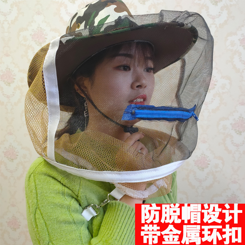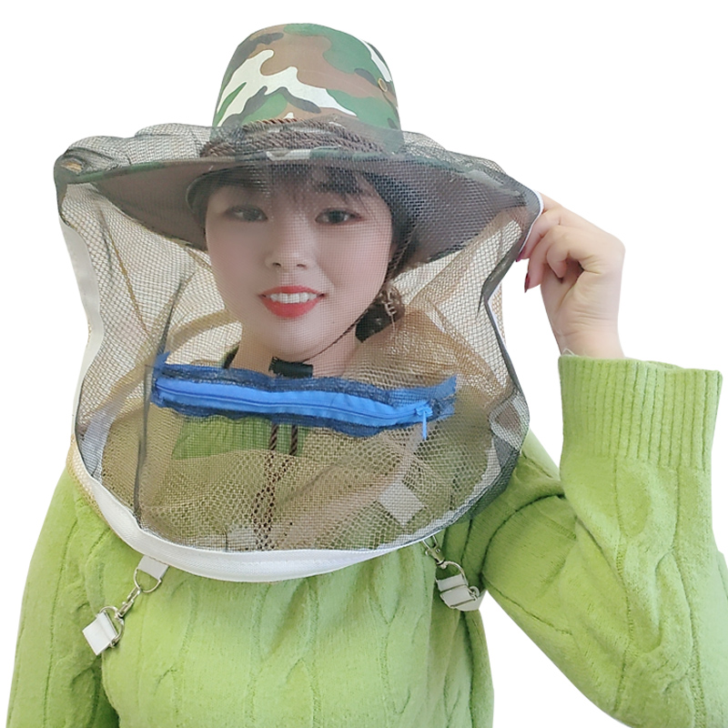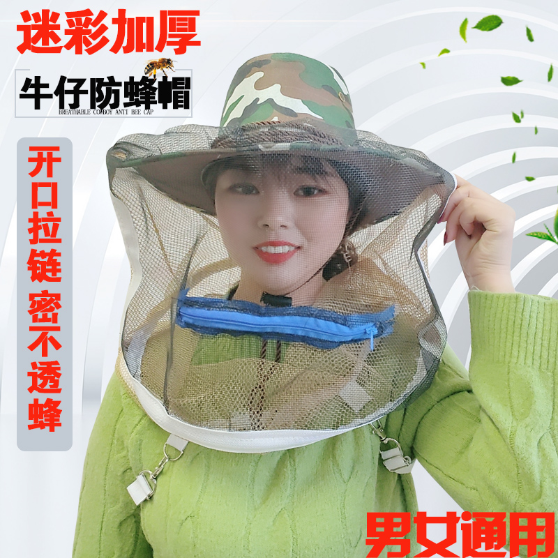 Anti-bee hat bee special anti-stinging hat breathable thickening protective face mesh gauze cover camouflage cowboy bee hat beekeeping tool