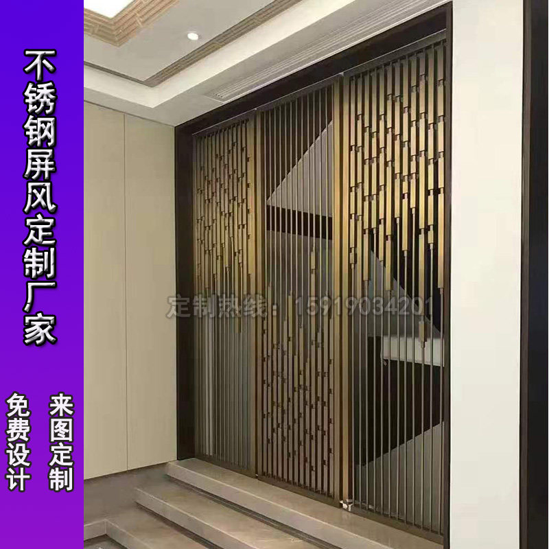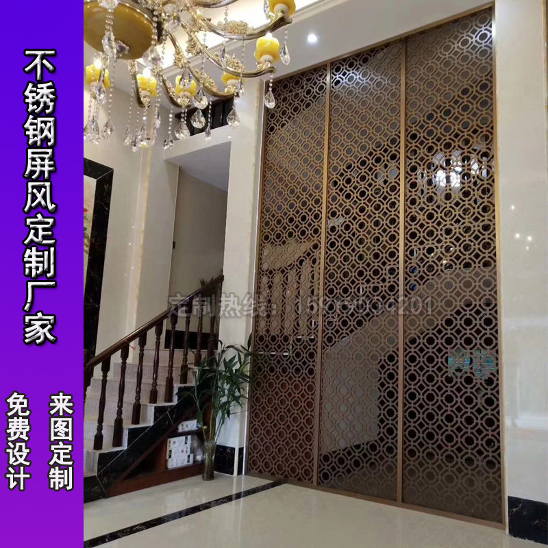 Hotel Au Style Titanium Alloy Hollowed-out Stainless Steel Screen Partition Light Lavish Living Room Genguan Rose Gold Flower Custom