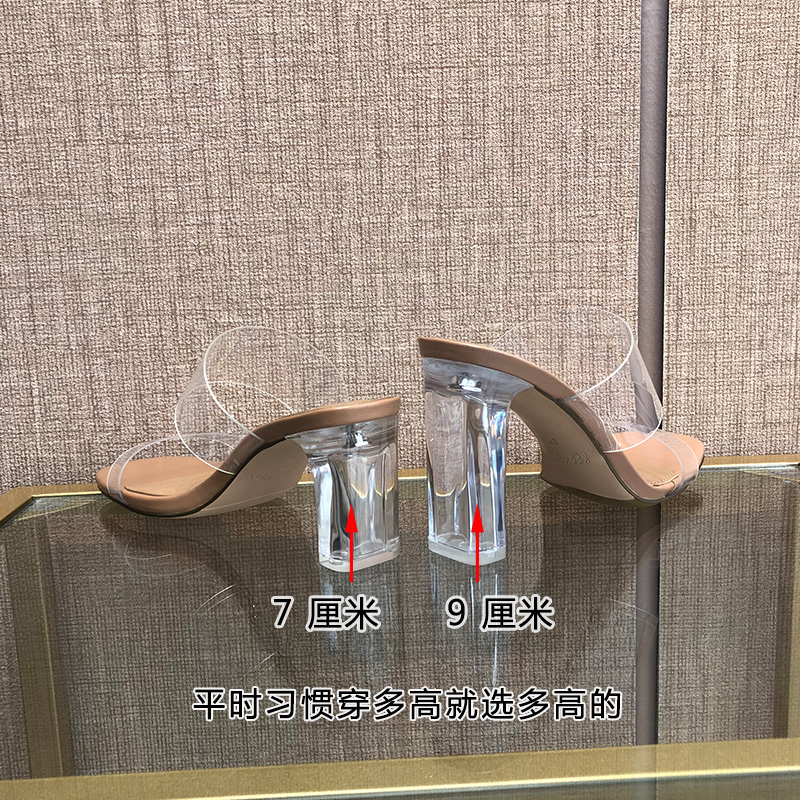 2021 summer net red with the same word with transparent sandals women's real leather crystal thick high-heeled sandals sexy open toe