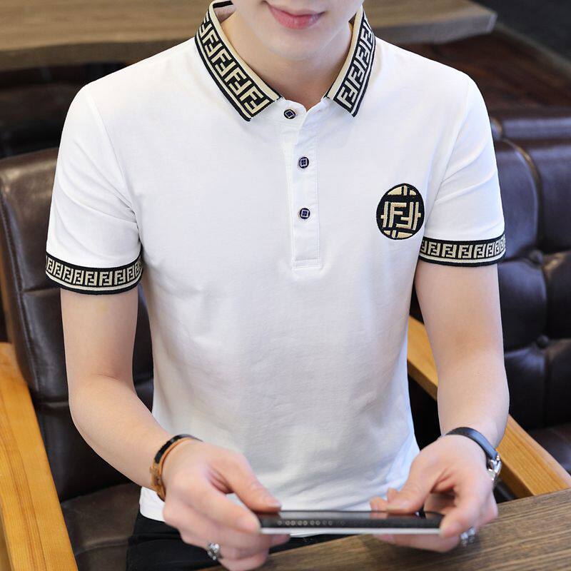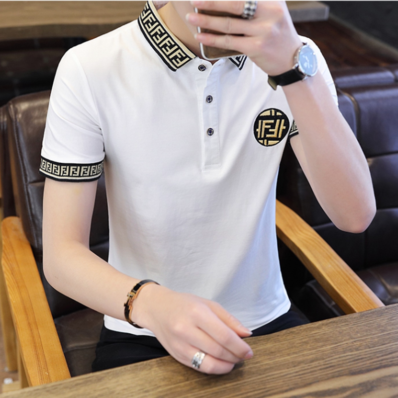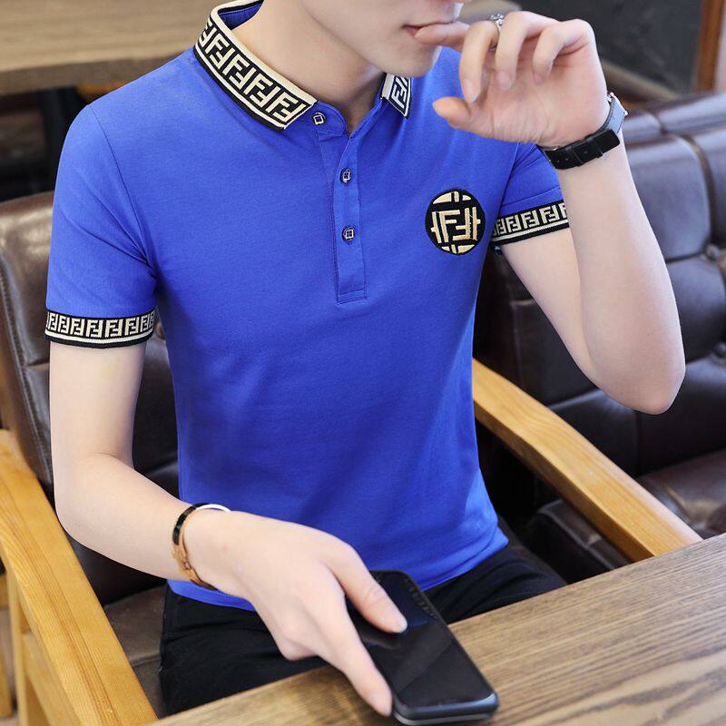 Tide Card Summer Men Short Sleeve T-shirt POLO Shirt Korean version Trend handsome Pure Cotton Embroidered slav-Laurenma Ball clothes on