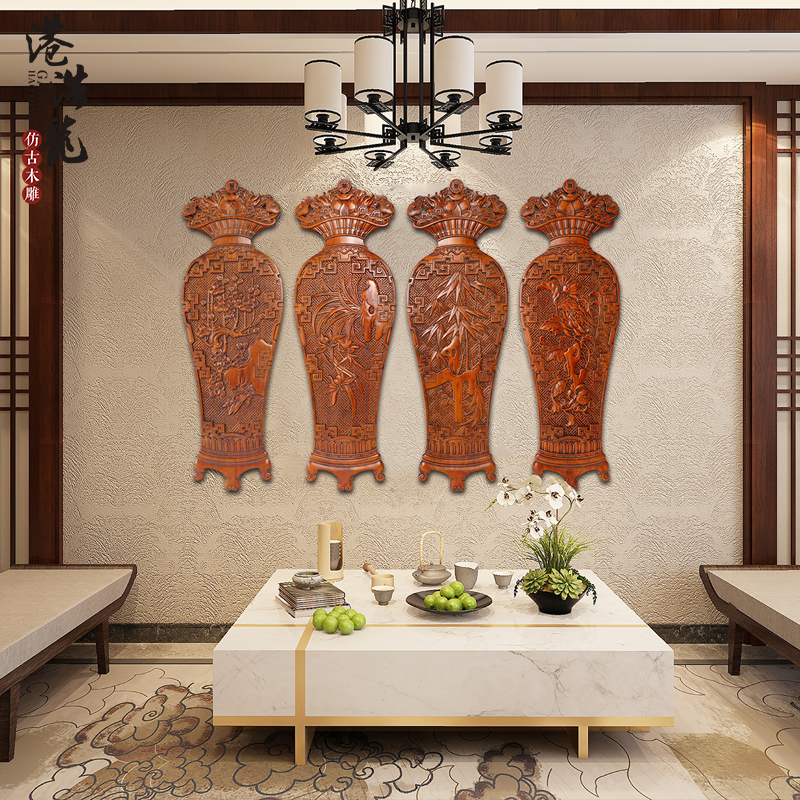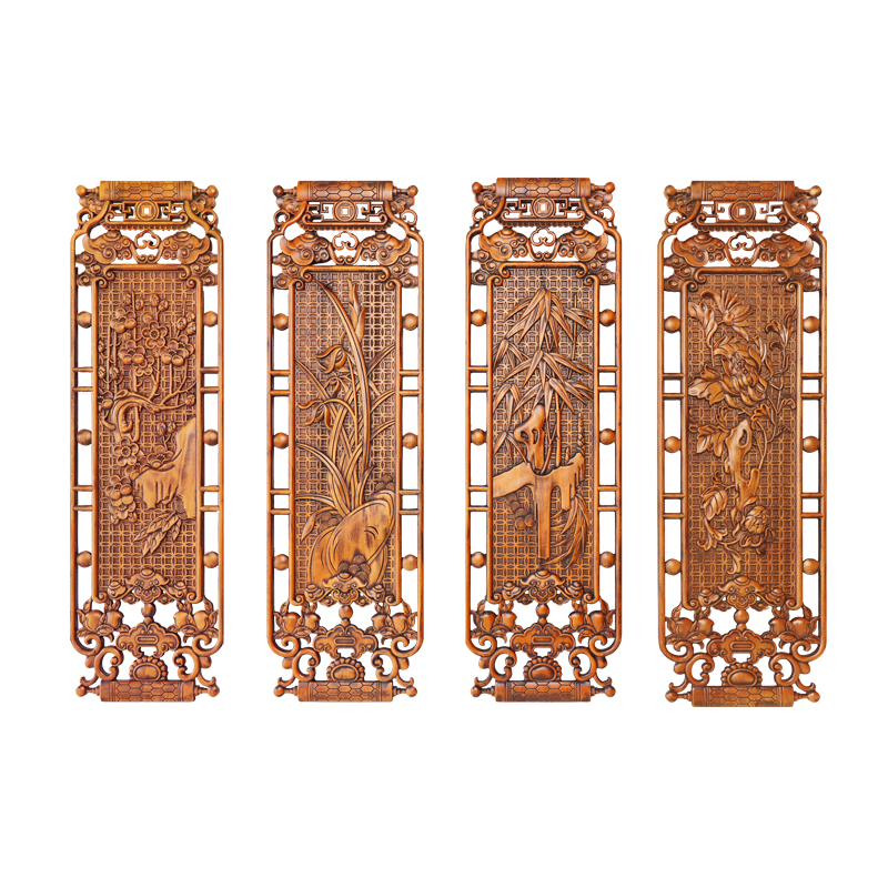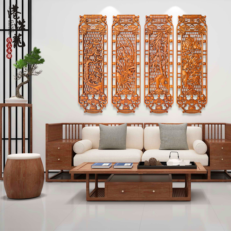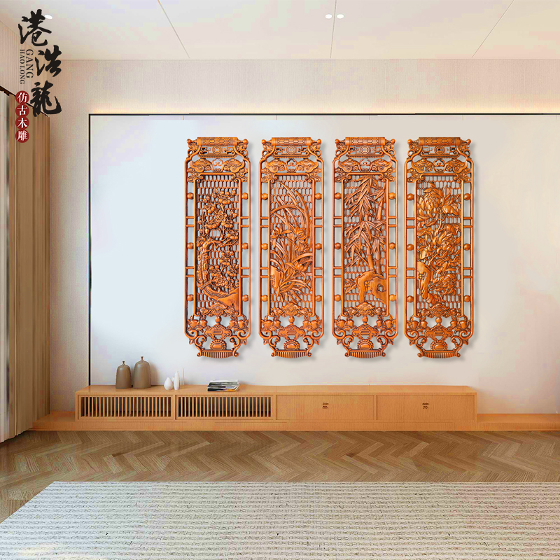 East Yang Wood Carving Melan Bamboo Chamomile Screen Imitation Ancient Solid Wood Engraving Fragrant Camphor Wood Pendant Living Room Background Wall Wall-mounted Large