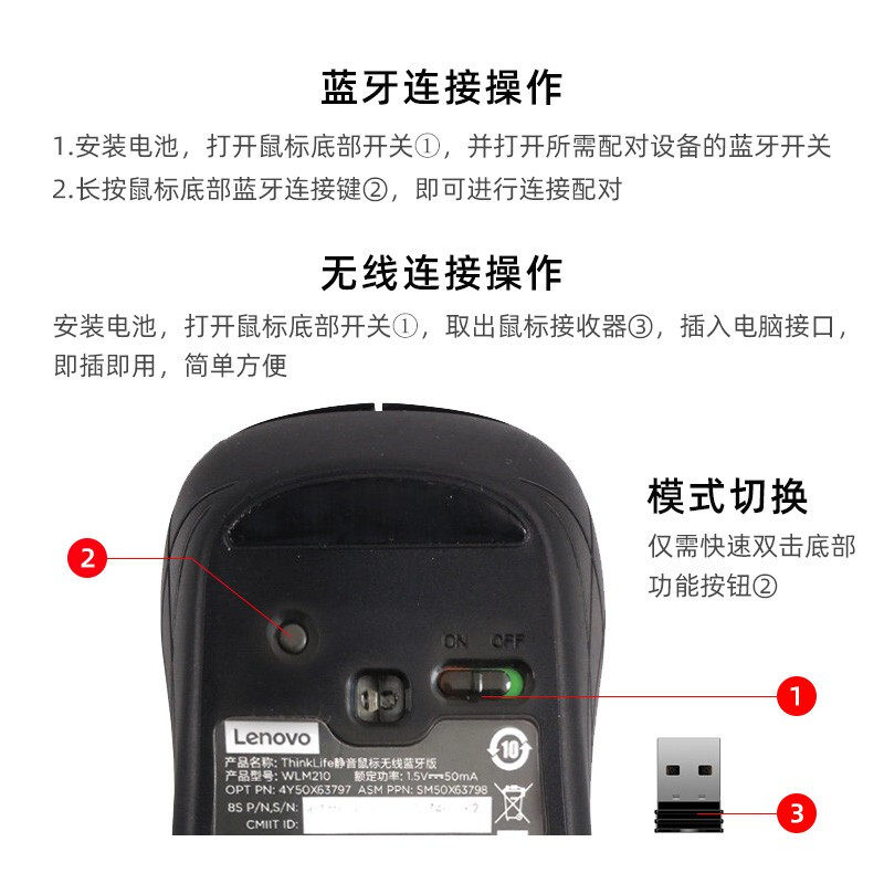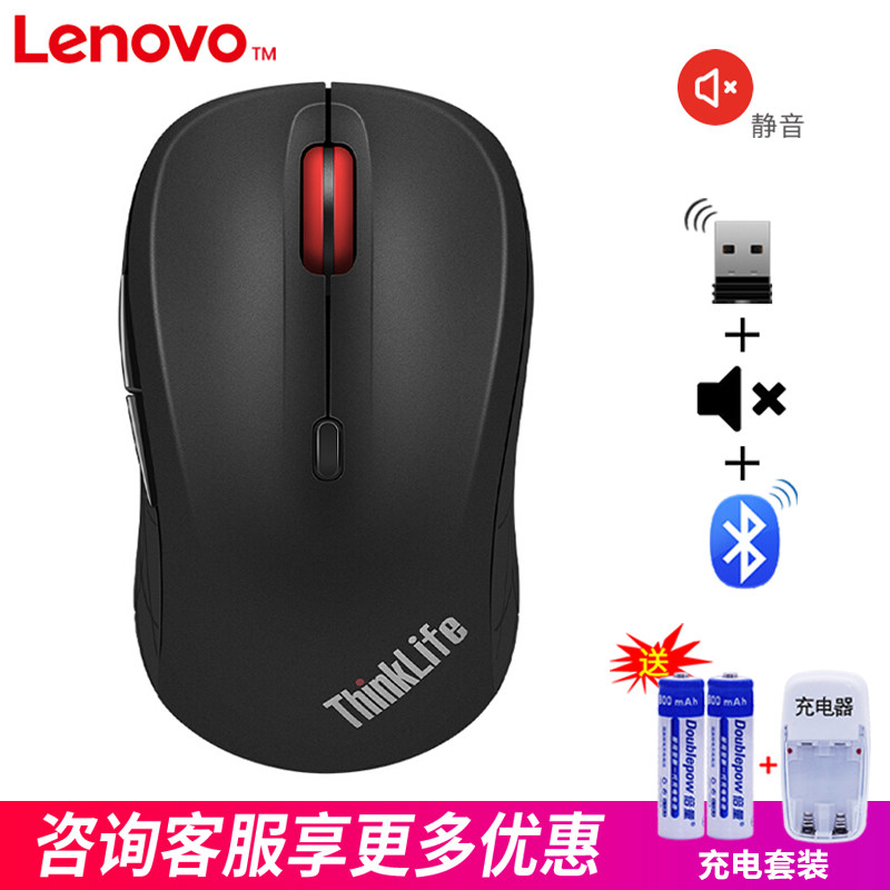 ThinkPad Lenovo Wireless 2 4G mute Bluetooth 5 0 dual-mode slip mouse WLM210 small slip mouse notebook desktop computer home business office electric race game for girls and cute mice