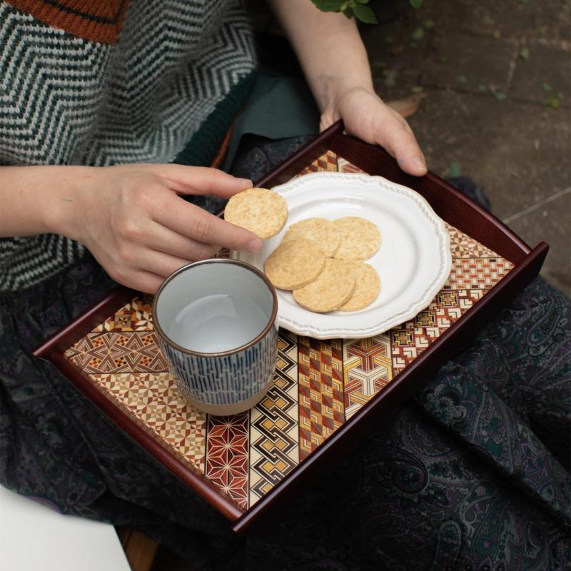 Japan's Hakone Yumu fine craftsmanship new handmade solid wood tea tray solid wood parquet Japanese hand-paid long plate storage tray