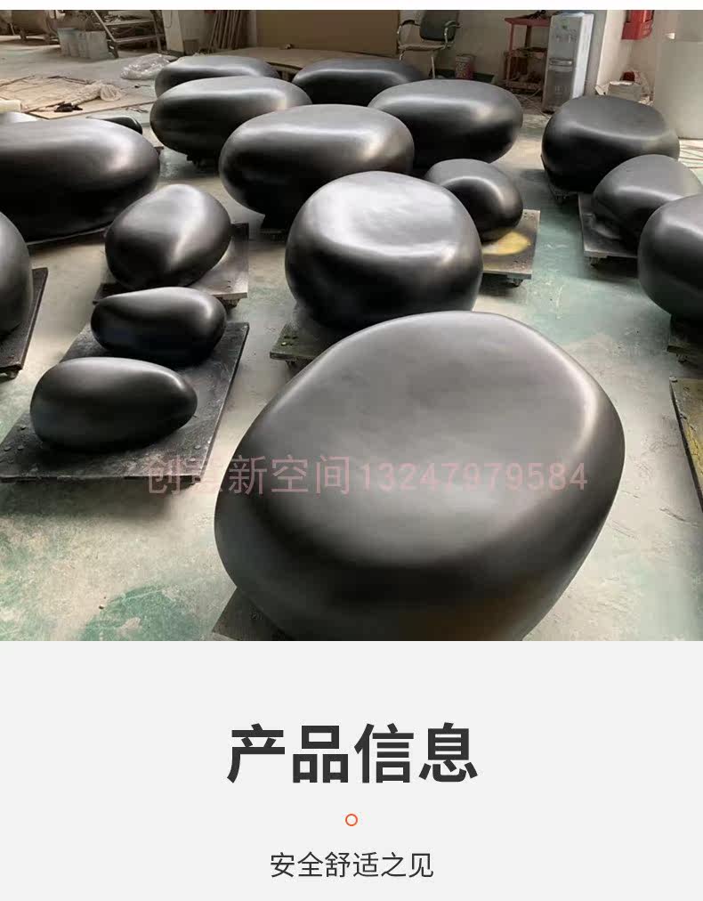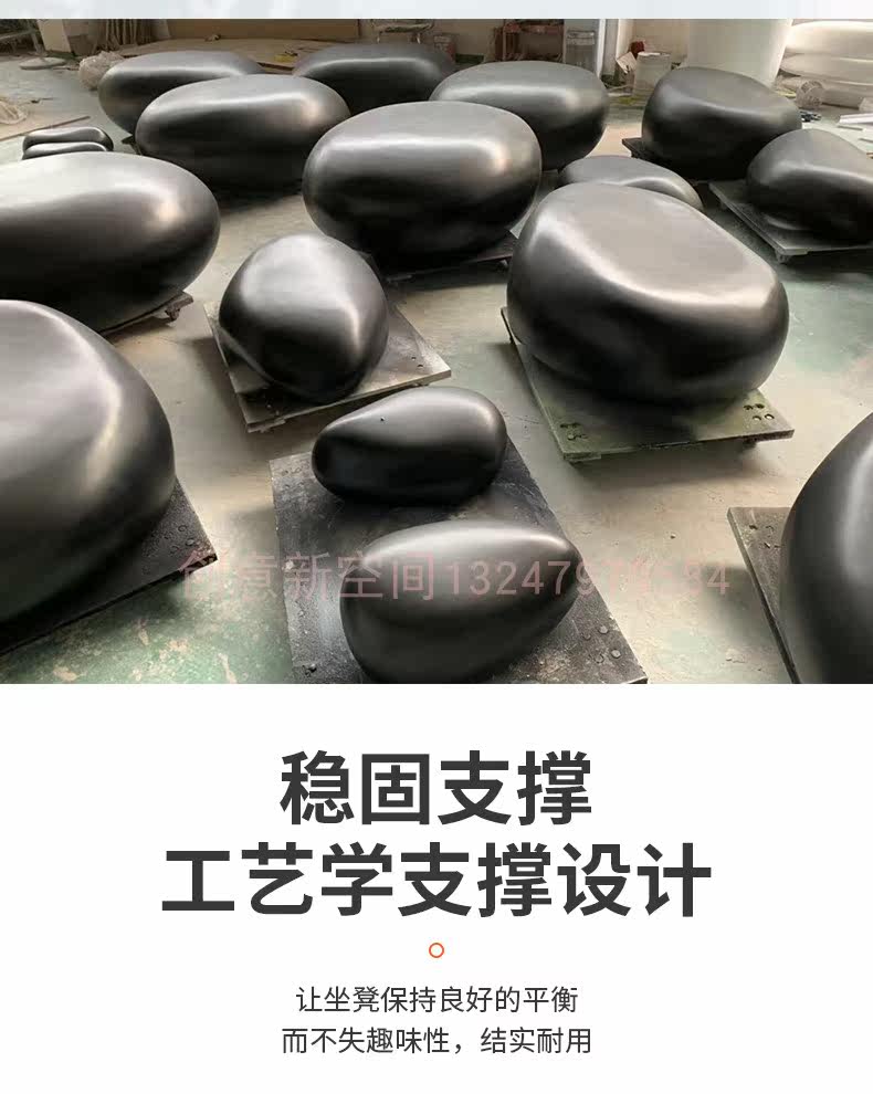 Outdoor fiberglass pebble bench creative oval shopping mall leisure seating shopping mall public rest chair