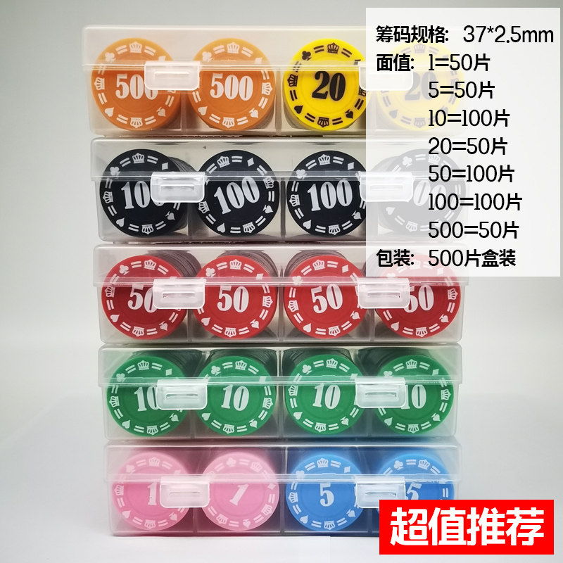 Crown chips 5 boxes (500 pieces)Recommended crown chips 1-5-10-20 (25 pieces each) Crown chips 10-20-50-100 (25 pieces each) Crown