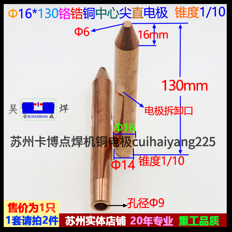 Spot welding machine electrode head touch welding machine touch welding head resistance welding machine chromium zirconium copper center pointed straight electrode 16*130