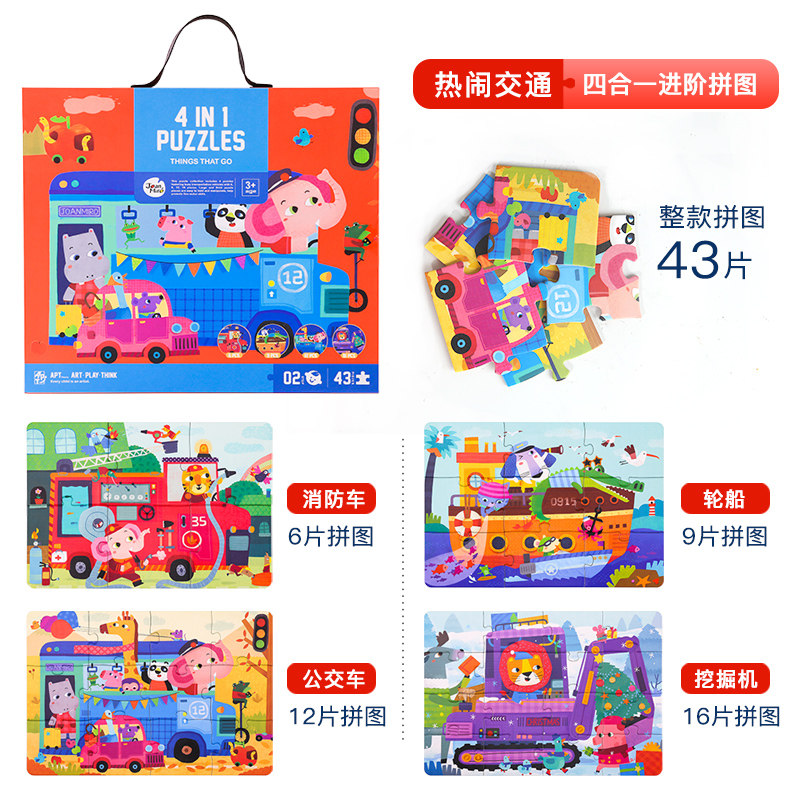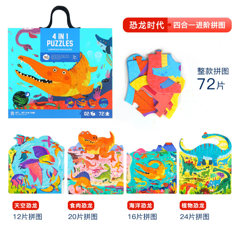 Four-in-one-dinosaur-era themed scene jigsaw puzzle-traffic total mobilization (108 pieces) Scene puzzle-Joy Zoo (108 pieces) Four-in-one-year-four-year-themed-one-dinosaur