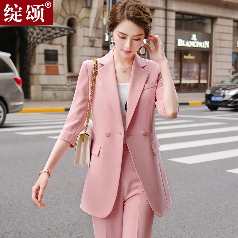 Pink small suit jacket goddess fan 2021 new spring and summer Korean temperament Net red professional suit fashion suit