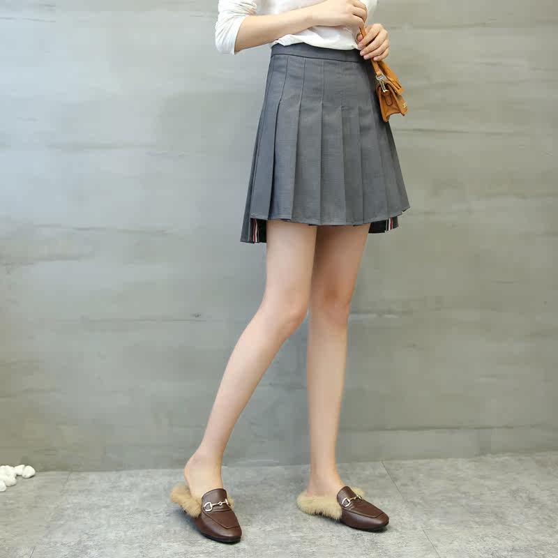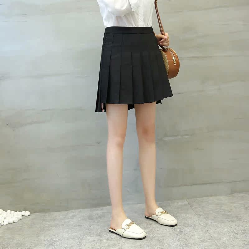 Spring Summer New High Waist Anti Walking Light Half Body Dress Woman 100 Hitch Plexu Skirt College Wind Black High Waist A Character Skirt Short Skirt