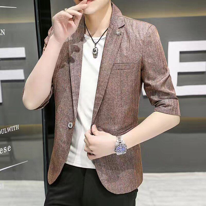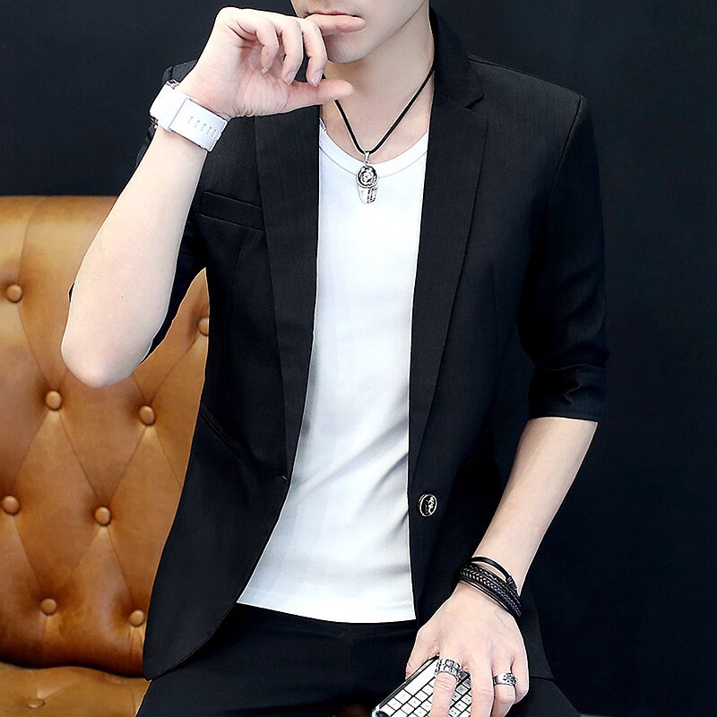 Seven-point sleeve suit men's summer thin section 7-point short-sleeved single Western shirt Korean version of the ultra-thin casual small suit jacket tide