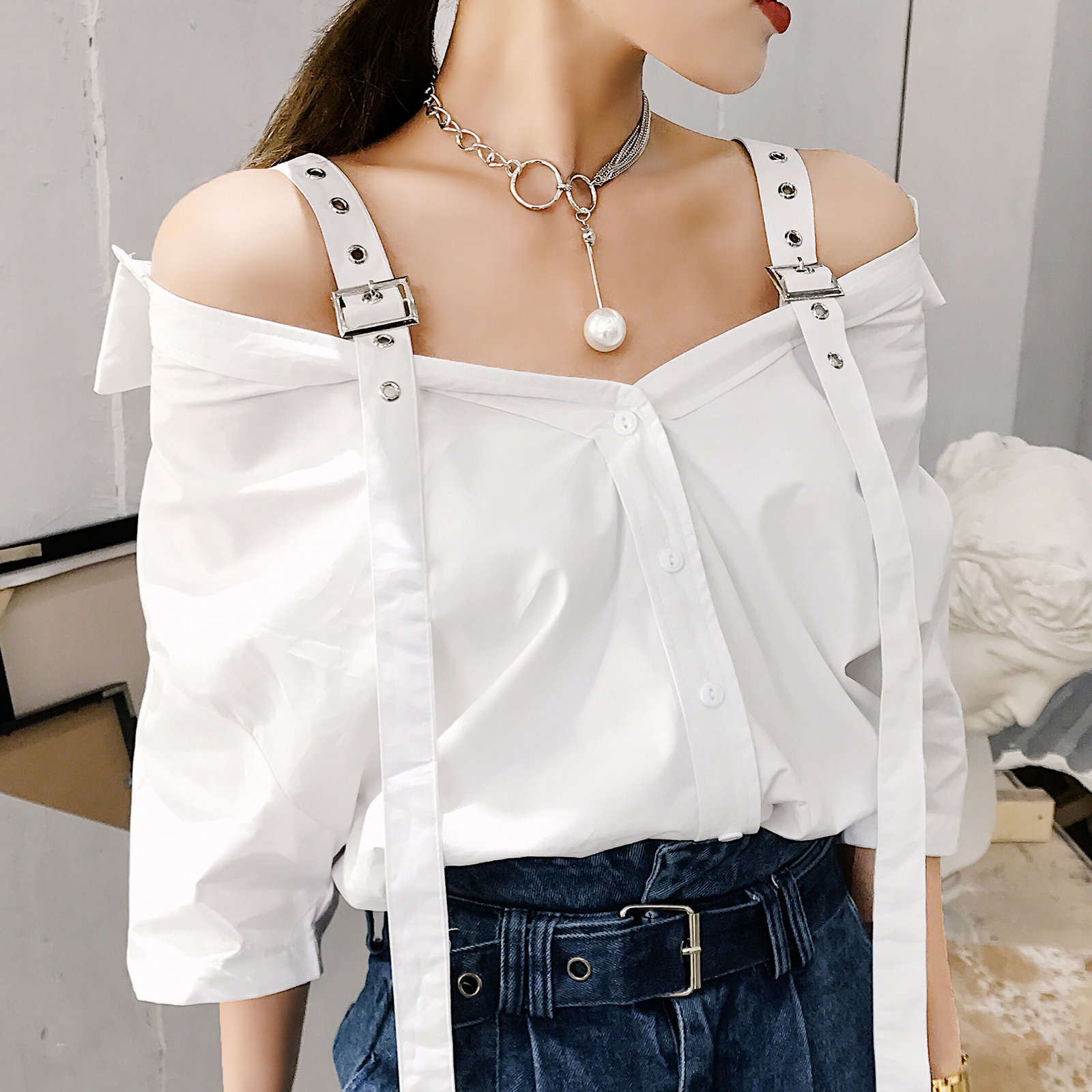 Hanging with a word of loose shoulder shirt shirt women's clothing 2020 new summer network red chic loose