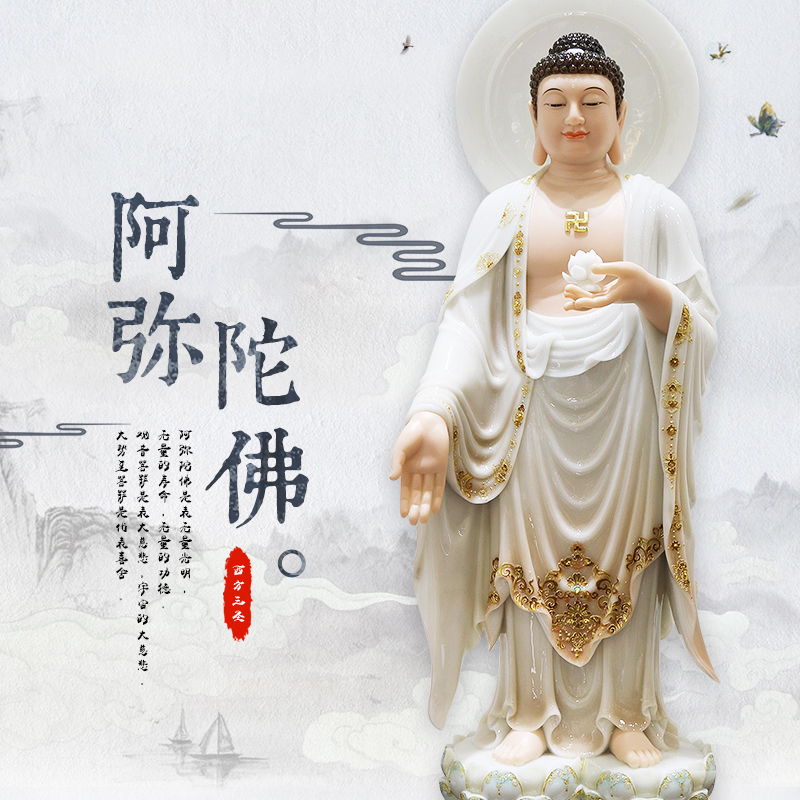 Three Matthew Han Baiyu as a statue of the statue of the Amitar Buddha to serve the Western three St. Shakyamuni Buddha