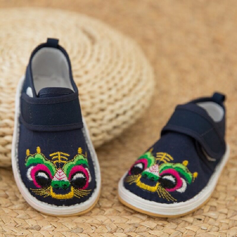 New baby tiger head shoes children's traditional handmade layered bottom tiger shoes embroidery non-slip bottom canvas spring and autumn single shoes