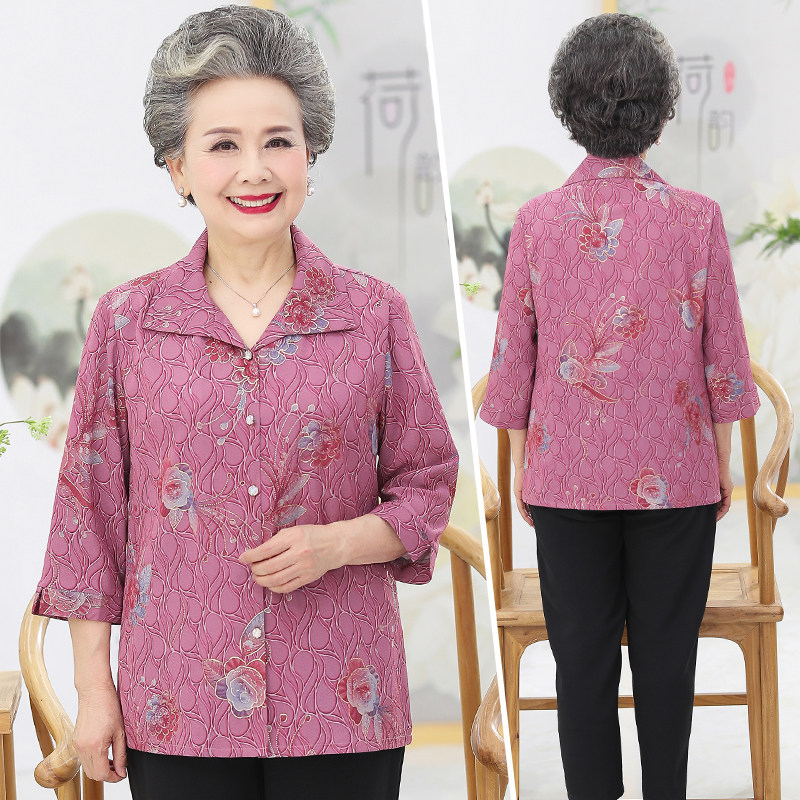 Middle-aged and elderly shirts women's spring clothing Grandma dress 70%-sleeve loose shirt Mom Long sleeves Summer Mrs. clothes on