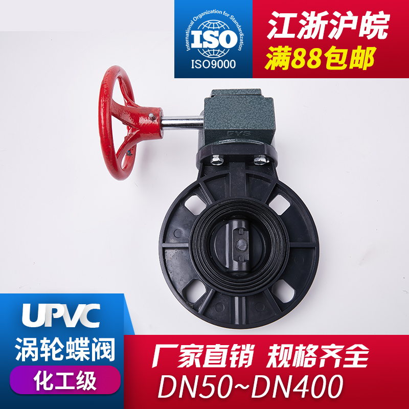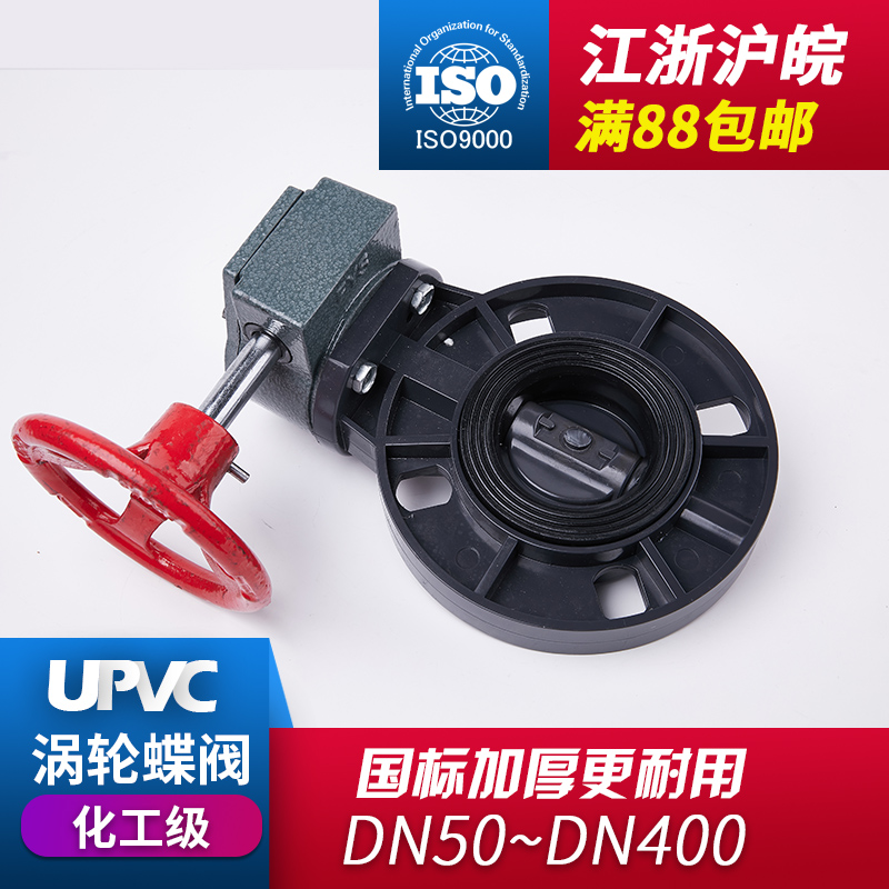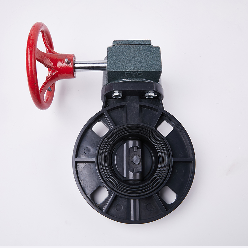 UPVC turbine butterfly valve to water pipe butterfly valve turbine PVC pipe plastic flange butterfly valve resistant to acid-chemicals 75 63