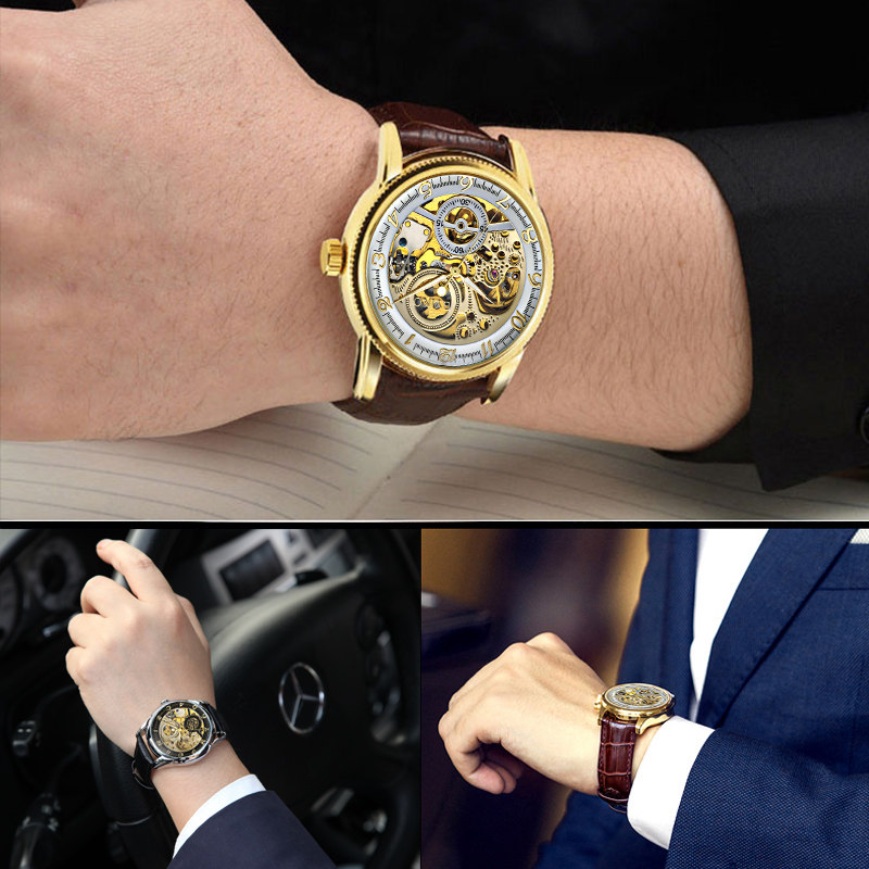 Men's mechanical watch automatic double flywheel male watch fashion hollow night light waterproof trend student watch male