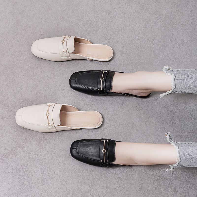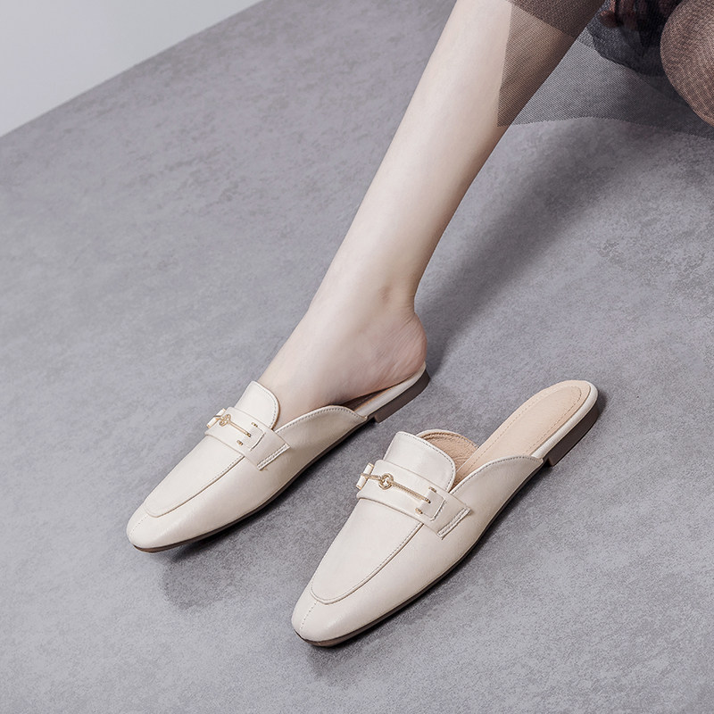 Baotou Half Slippers Women's Summer Outer Flat Half Slippers Single Shoes 2022 New Sandals Muller Shoes French Slippers