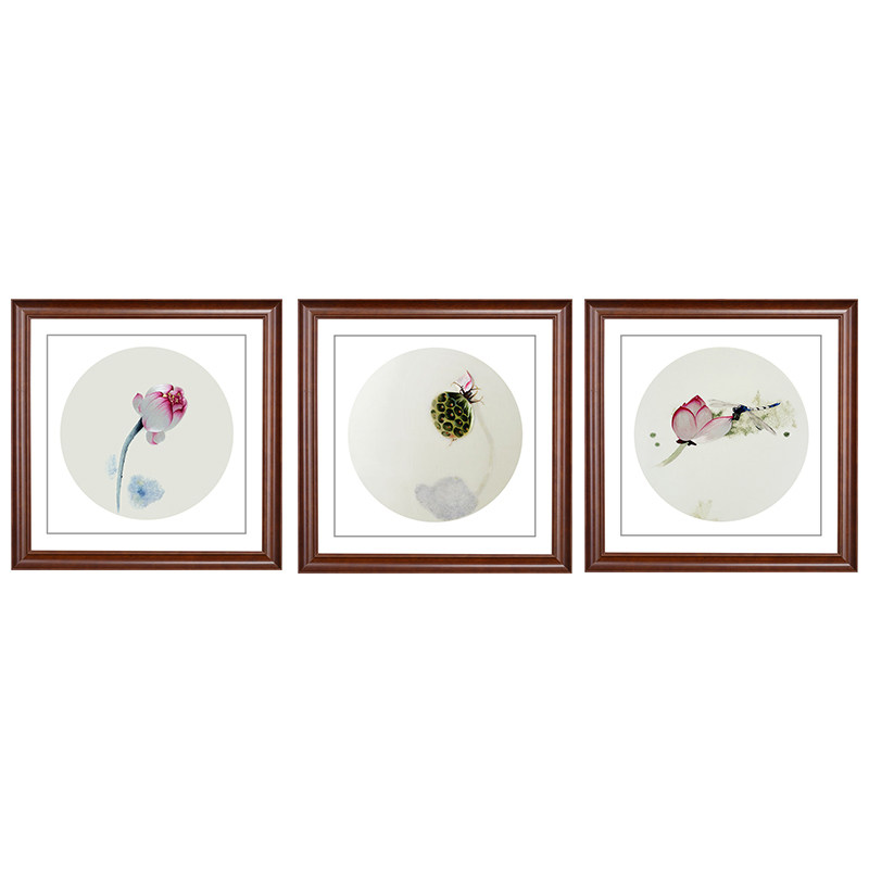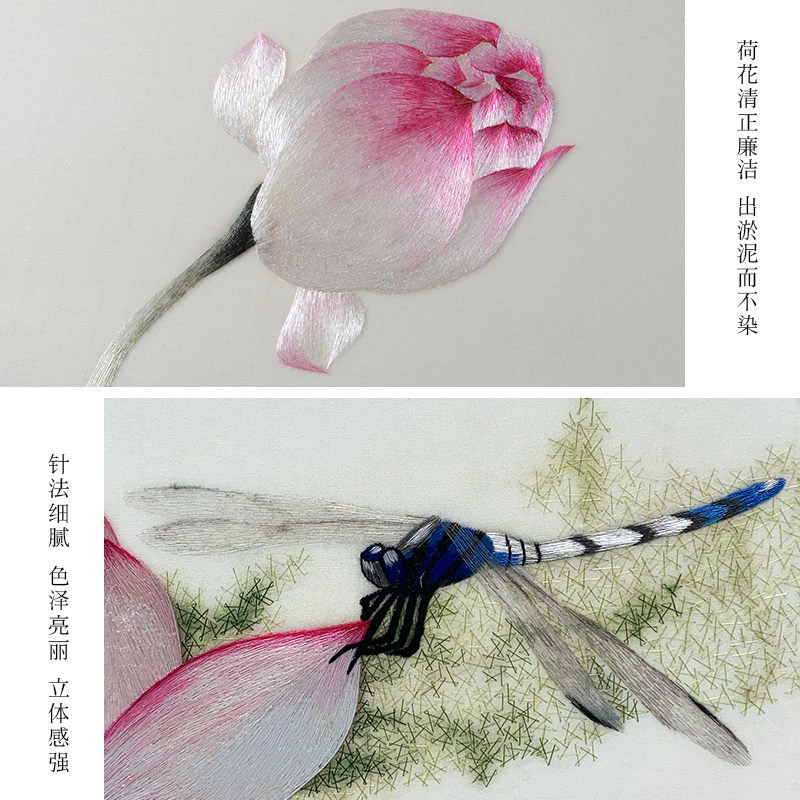 Golden Wu needle 1-4 silk handmade Su embroidery finished hanging painting Suzhou embroidery painting Living room entrance Chinese decorative painting Lotus