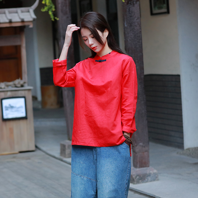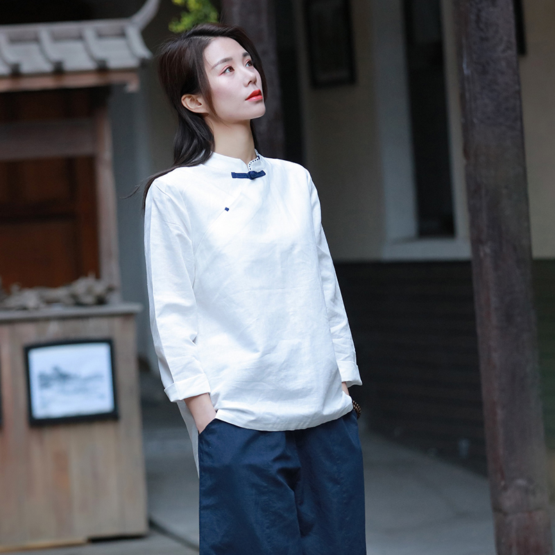 Cotton Hemp Tai Chi Clothing Linen Easy disc buckle inclined flap Long sleeves shirt tea suit Hemp Zen blouse women in the middle of the country