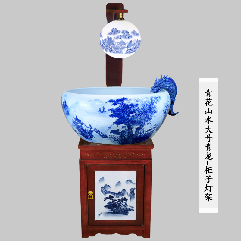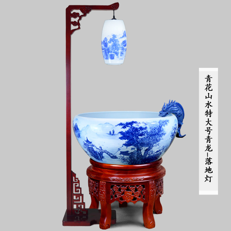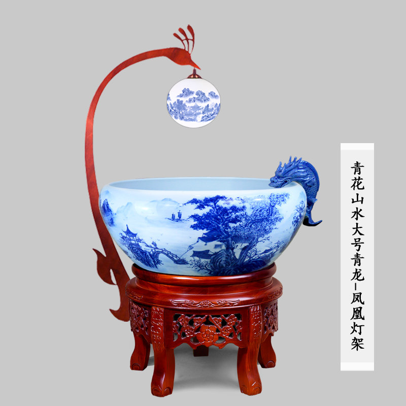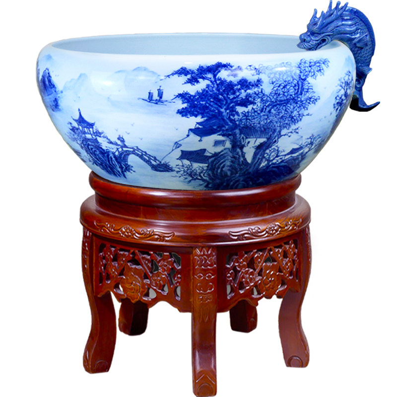 Porcelain fish tank Jingdezhen Domestic fish farming basin Living room Extra-large Ceramic Fish Tank Filtration Cycle Flowing Water Turtle Gold Fish Tank