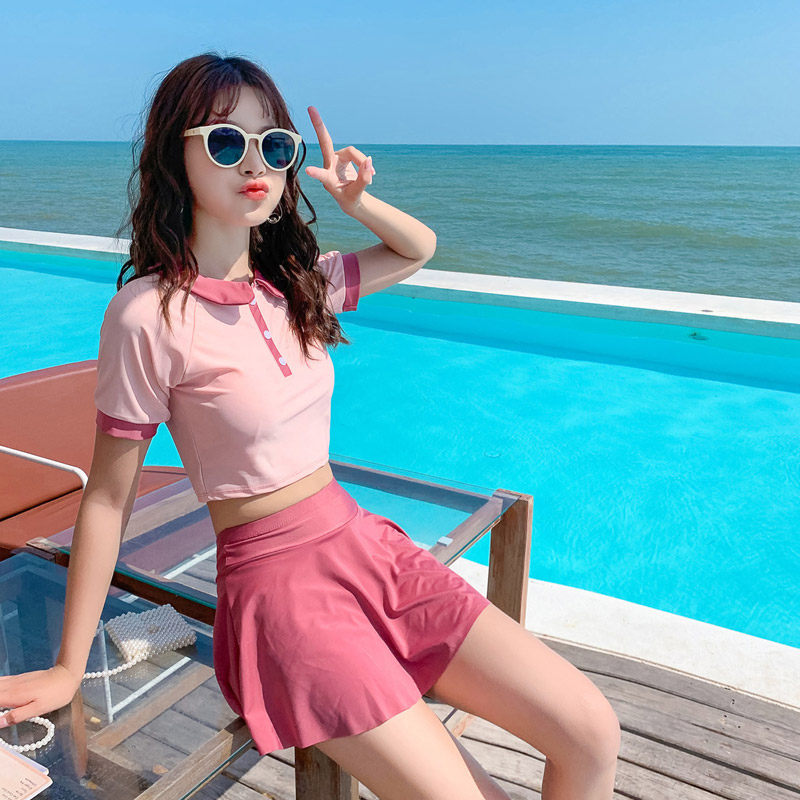 2020 New Swimsuit Schoolgirls Conservative Cute Little Clear New Day Ensemble Teenage Dress Two-style Spa Swimsuit